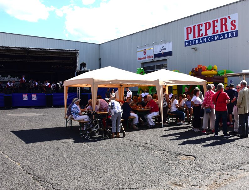 Mit den rheinischen Spezialitäten von „Onkel Fritts“ und den Leckereien von „Bakaliko Greek Food” konnten die Gäste an den beiden Versorgungsstationen deutsche und griechische Küche genießen. Der Getränkemarkt Pieper hatte seinen Getränkestand extra dazwischen positioniert. Das führte bei so manchem Gast zur der anerkennenden Bemerkung: “Heute fühle ich mich in Roisdorf fast so wie in einem bayrischen Biergarten.”