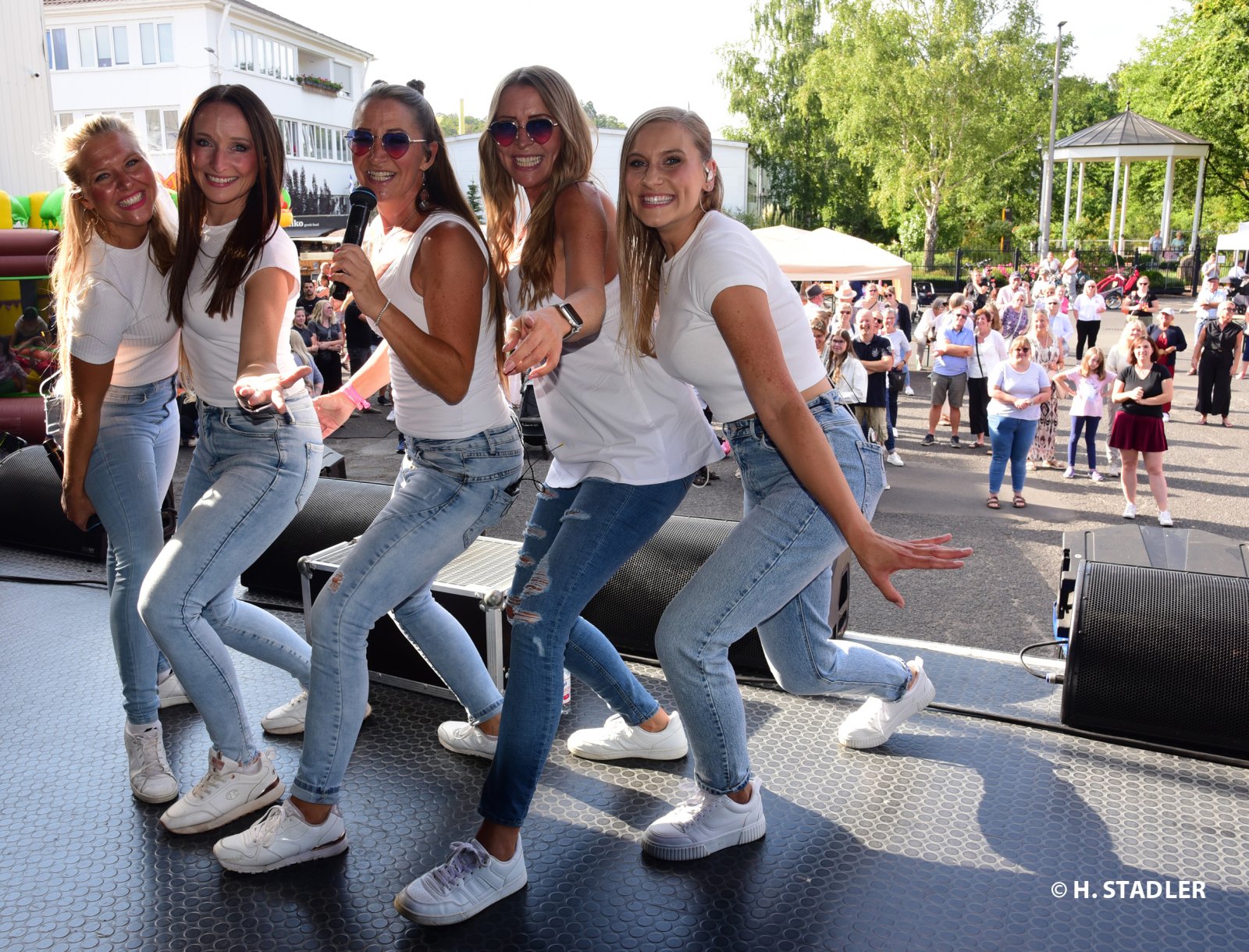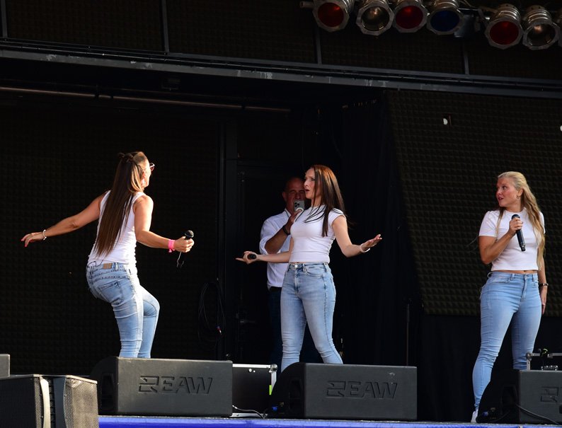 Zweifelslos war der Auftritt der FUNKY MARYS aus Köln der Höhepunkt des musikalischen Unterhaltungsprogramms am Nachmittag. Seit 2002 sind diese fünf starken Frauen im Kölner Karnevalsgeschehen eine feste Größe. Die diesmal mitten im Sommer echte rheinische Karnevalsstimmung nach Roisdorf brachten. Kein Wunder, dass getanzt und geschunkelt wurde und nur mit einer Zugabe konnten die FUNKY MARYS erst nach einer Stunde die Bühne verlassen. Doch schnell kamen die Damen nicht vom Festgelände weg. Viele Roisdorfer warteten schon hinter der Bühne geduldig auf die Marys. Es wurden fröhliche Selfies mit den gut gelaunten fünf Ladies gemacht und zusätzlich zahlreiche Fanautogramme bei den Kölnerinnen eingesammelt.