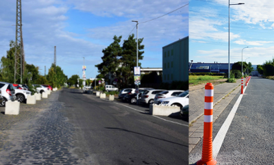 Zusätzlich wurde auch auf der Johann-Philipp-Reis-Straße die gesamte Straßenfront mit rot/weißen Flex-Pollern neu ausgestattet und gekennzeichnet. Damit konnte ein weiteres Parken auf dem Gehweg und des Weiteren in der angrenzenden Grünanlage verhindert werden. Im September diesen Jahres sind dann auch neue Markierungen auf der Raiffeisenstraße aufgetragen worden, um dort das Lkw-Parken geregelt zu ermöglichen.
