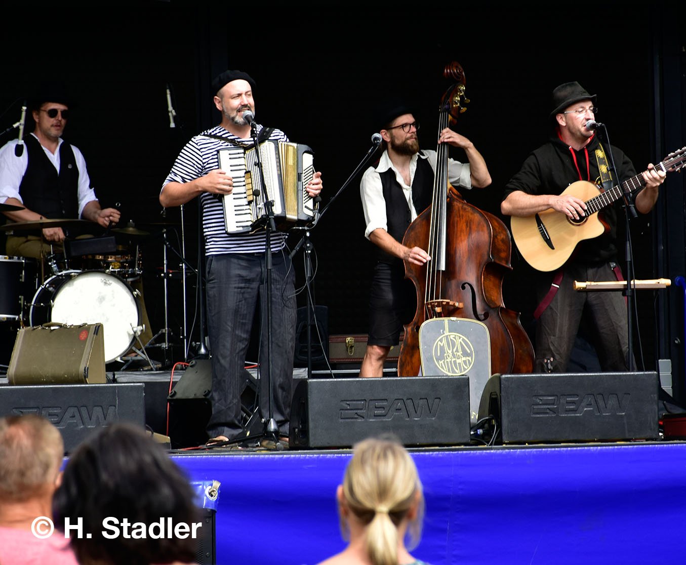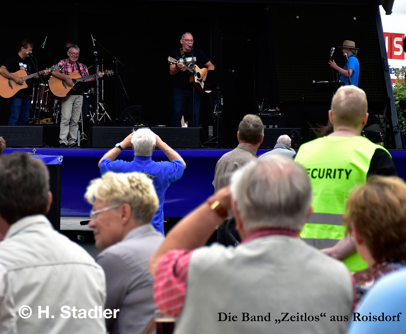 Die Wesselinger Lady-Rockgruppe BLACK CANDY ROSES eröffnete, pünktlich um 14 Uhr, mit klassischer Rockmusik den musikalischen Teil der vielen angebotenen Attraktionen. Nach den jungen Ladys ging es rockig weiter mit den CHICOS ON FIRE aus Bonn. Gewerbevereinsvorsitzender Harald Stadler veranlasste dies bei seiner Begrüßungsrede zu der vorausschauenden Bemerkung, diese Musikrichtung wecke bei ihm alte Erinnerungen an die Jugendzeit seiner Generation, der heute 60- und 70ig Jährigen. Dies sei auch ein musikalischer Vorgeschmack darauf, wie sich in den nächsten Jahrzehnten die Hausmusikszene in den Roisdorfer Seniorenheimen vermutlich verändern werde.