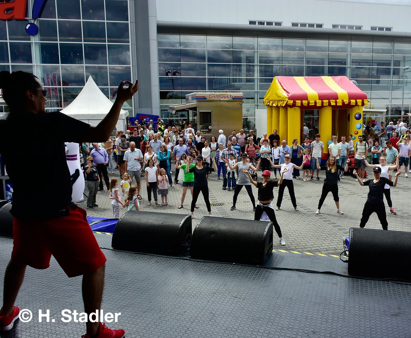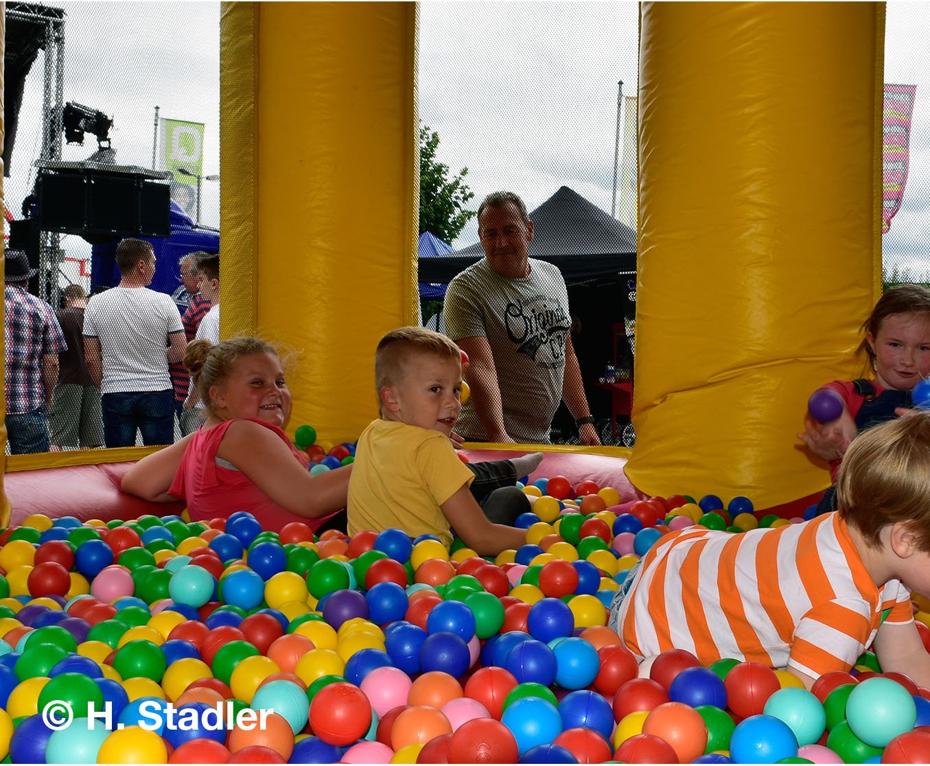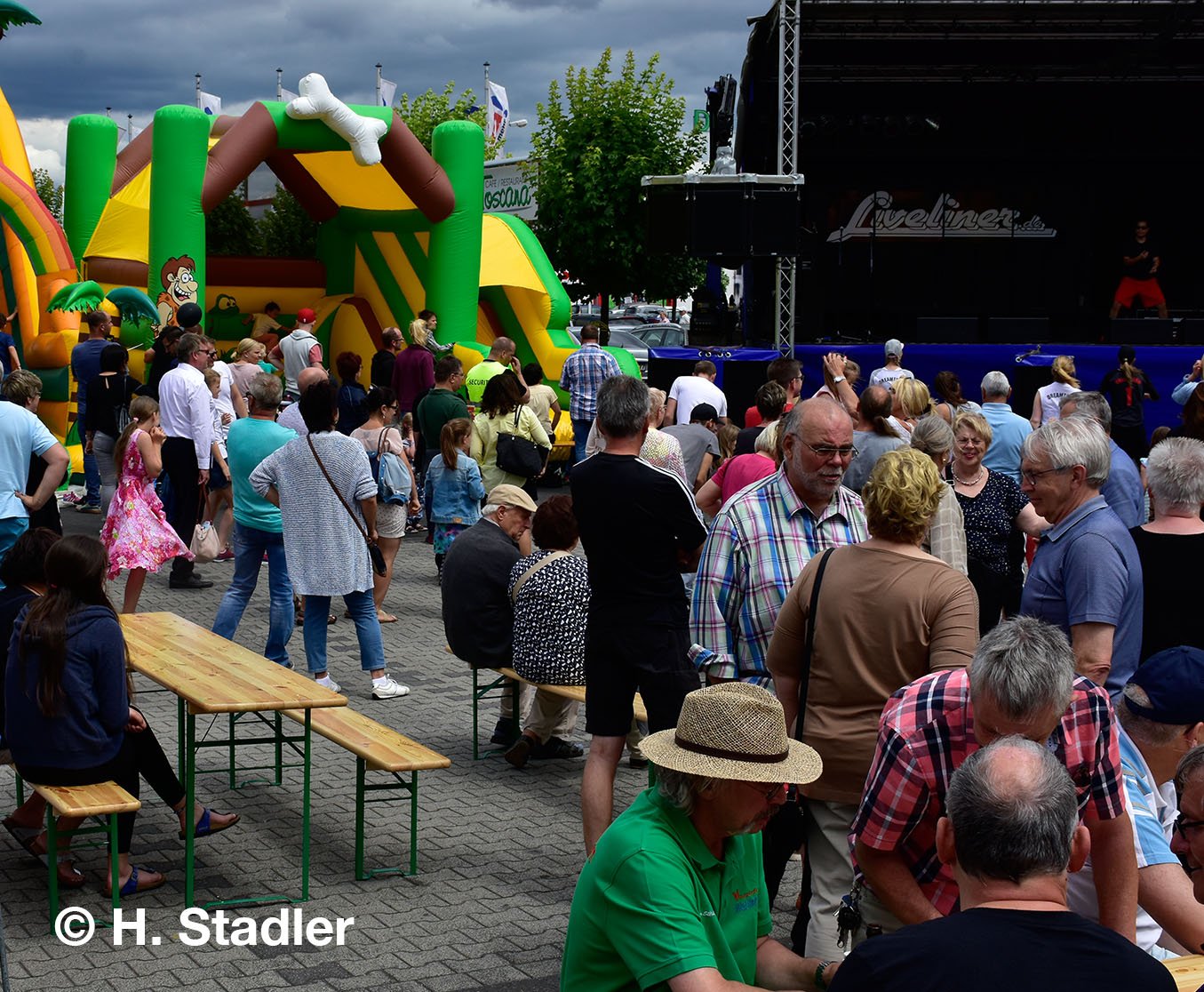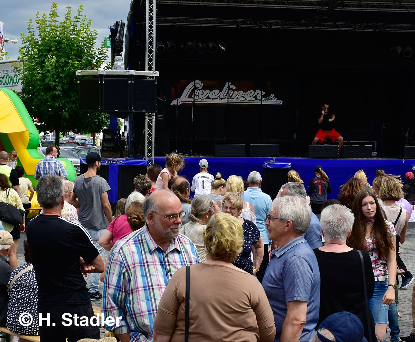 Vor dem PORTA-Möbelhaus hatten wir neben unserem Messezelt diesmal einen geräumigen Festplatz für die großen und kleinen Gäste unseres Familienfestes eingerichtet. Eine große Showbühne und gleich drei Attraktionen für unsere „Pänz“, verbunden mit Getränke- und Imbissständen rundeten das Bild eines in sich geschlossenen Gewerbemarktes ab.