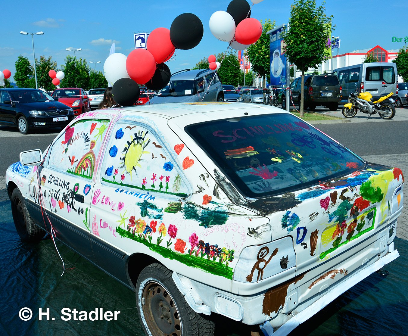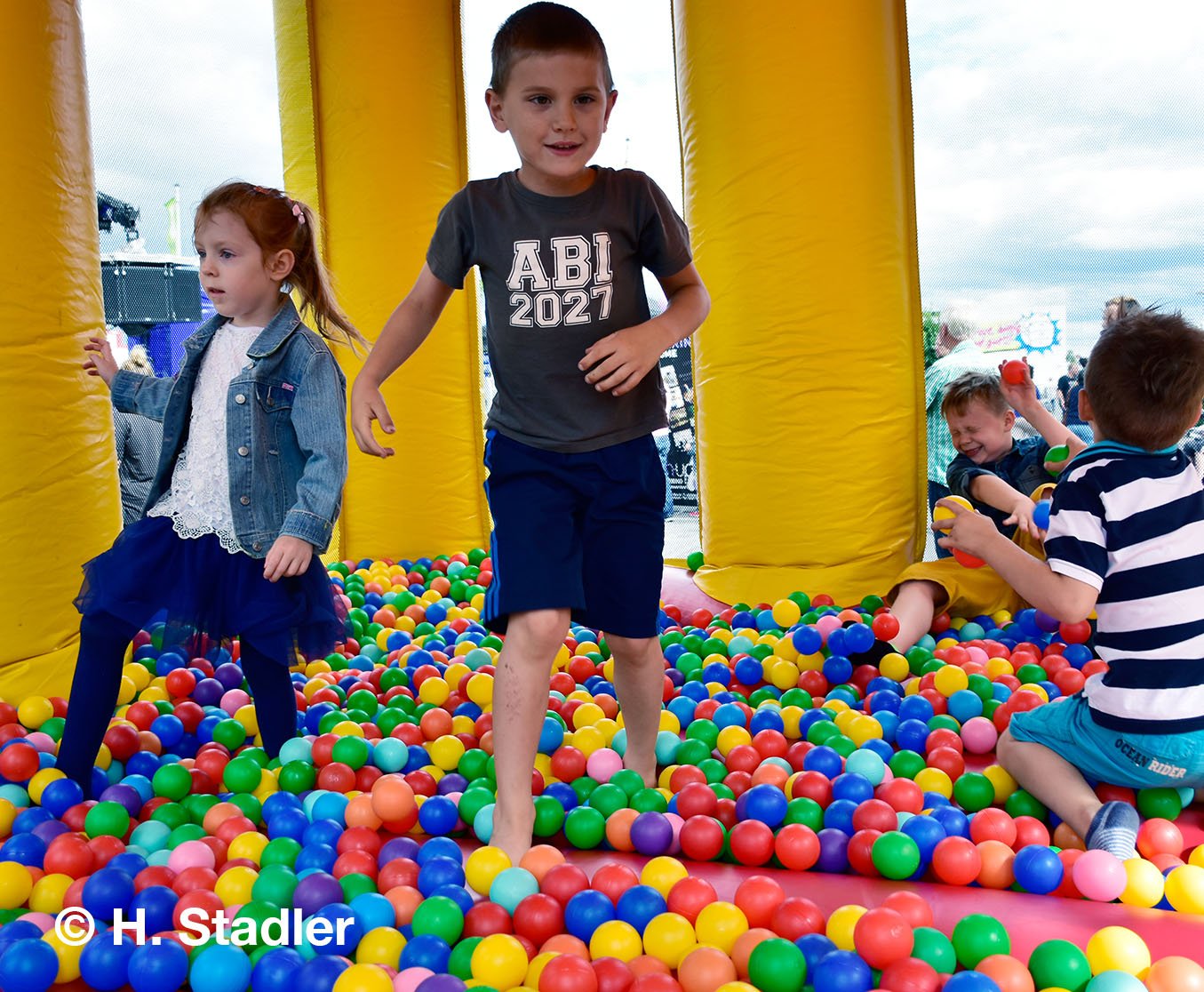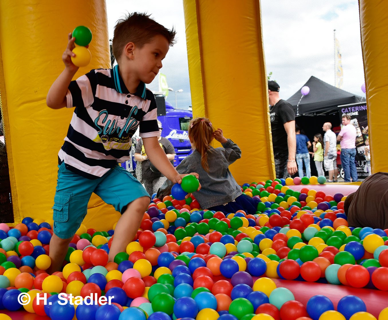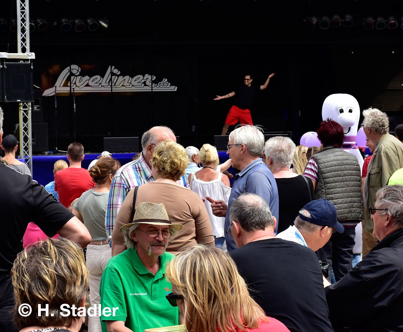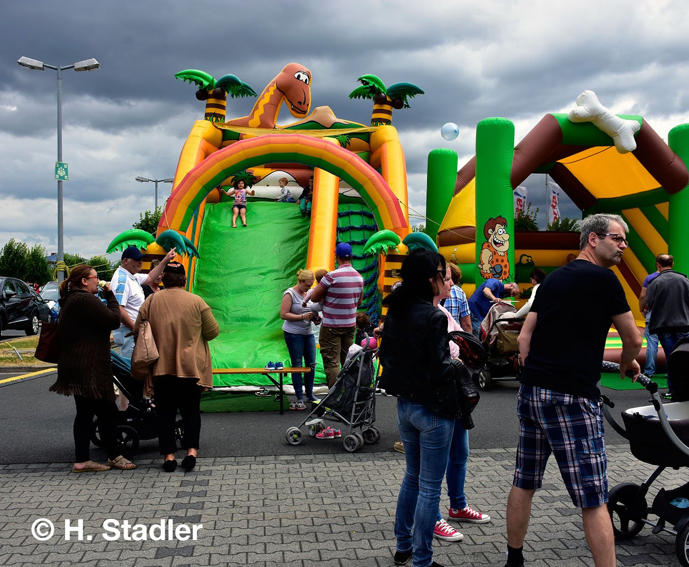Vor dem PORTA-Möbelhaus hatten wir neben unserem Messezelt diesmal einen geräumigen Festplatz für die großen und kleinen Gäste unseres Familienfestes eingerichtet. Eine große Showbühne und gleich drei Attraktionen für unsere „Pänz“, verbunden mit Getränke- und Imbissständen rundeten das Bild eines in sich geschlossenen Gewerbemarktes ab.