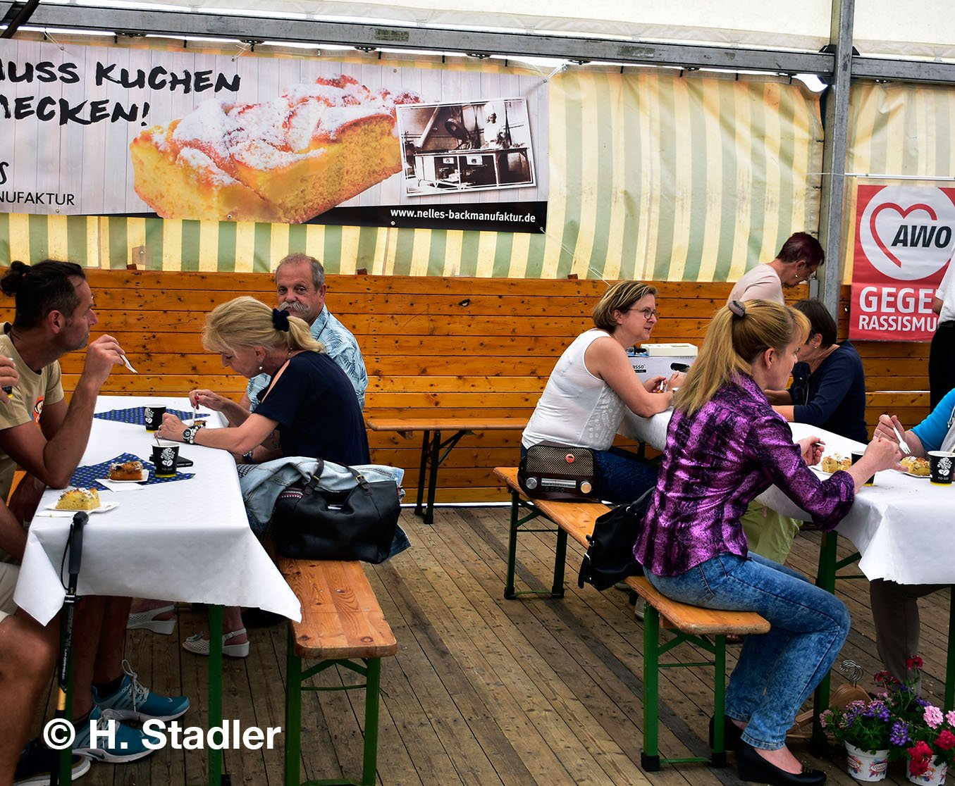 Nicht nur Piepers unschlagbar günstiger Verkaufspreis bei den Getränken an diesem Tag, sondern auch das vom Gewerbeverein erstmals betriebene Parkcafé, gesponsert von der Backmanufaktur Nelles, mit leckerem Kuchen, zu einem ebenfalls günstigen Verkaufspreis, veranlasste Vereinsvorsitzenden Harald Stadler zur Bemerkung, dass hier die Roisdorfer Gewerbetreibende auch ihre Verantwortung gegenüber den Familien und Senioren zeigen, die sich derzeit Sorgen wegen den zu erwartenden finanziellen Belastungen bei Strom und Gas machen. „Heute setzen wir mit unseren Verkaufspreisen ein Zeichen gegen die galoppierende Inflation!“