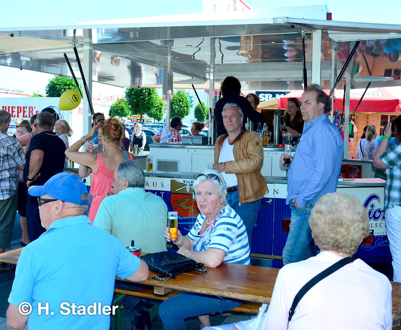 Dafür sorgte ebenfalls Gewerbevereinsmitglied Michael Pieper mit seinem Team, das direkt vor seinem Getränkemarkt einen großen Getränkepavillon aufgebaut hatte und die Gäste mit frisch gezapftem Kölsch, kühlem Mineralwasser und weiteren Erfrischungsgetränken versorgte. Kinder erhielten kostenfrei das Roisdorfer Mineralwasser.